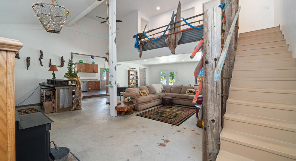 Welcome to your dream beach compound! This converted shop/barndominium boasts tall ceilings and unique nautical designs with driftwood finishes. With so much potential, this property is perfect for those seeking a coastal retreat. The spacious layout includes a second bathroom that's already plumbed, making it easy to add your personal touch. RV Hookups water and electrical are installed, house is tucked away on the corner of two (unofficial) dead-end streets, gravel maintained by the seller. This charming beach property is ready to become your go-to sanctuary. Don't miss out on this rare gem!